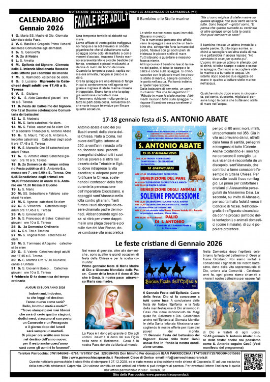Notiziario della Parrocchia S. Michele Arcangelo di Caprarola del mese di Gennaio 2017